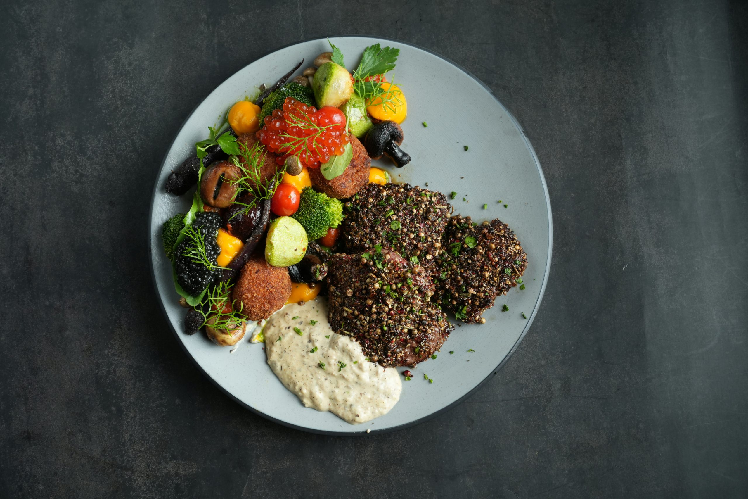 - Smoked salmon with scrambled eggs and roasted vegetables